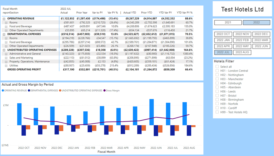 Dashboards are available 24/7, even on your mobile, to enable your team to analyse daily performance against budget and quickly identify issues affecting performance. More in-depth data is also available, so you can apply the right strategies to improve performance before the end of the month rather than after. You can also access your entire business portfolio and compare the financial performance of each unit, benchmarking performance against your own units and also against competitive sets.